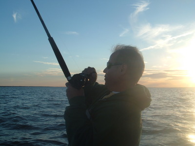 Tonight we had Charlie, Amos, Jim and Tom on board for some fishing. Great guys and the B-Busting started from the get go. Evening started out a little breezy with the wind against tide, but she laid down nice. Guys battled Blues to 15 lbs, by the end of the trip the bay was like glass. Great night with some great guys