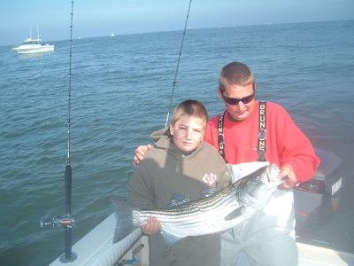 Had Jeff Santoro out today with Uncle Joe, Pete and his sone Dylan for some Bassing. Greeted with Morning Fog. Headed out to the grounds and things were slow. However the day became woth it when 12 year old Dylan scored his first ever Striper a nice 32" Fish. Bounced around had good reads made numerour setups but the bite was not to be for us. All in all a good day with great guys and another first on the boat.