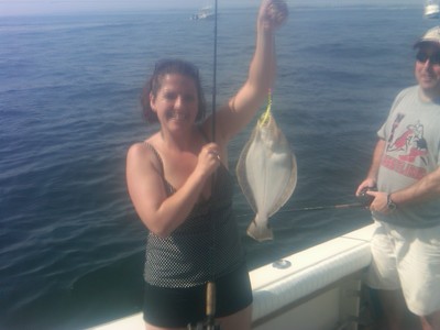 Today we had Brenden and Heather Hayes with their friends Jim and Diane out for a Fluking Trip. Good weather and conditions greated us and they crew was ready to fish. The gang had a blast landing Fluke to 4 1/2 lbs. The ladies were novices at the beginning but really came into their own. All in all a good day with some great people.