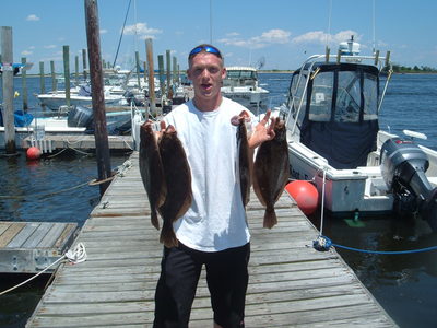 Today we had onboard the Bryan Thorn Charter with Bryan, Anthony, Blaine and Chad for a 1/2 day Fluke trip. Great weather and conditions greated us and the guys were egar to go. Made out way out to the first spot and did a couple drifts before picking up some shorts. Changed locations and boxed a couple keepers and some more shorts went back. Third spot had Blaine on Fire, Blaine boxed 4 nice Fluke all over 20". Made a few more drifts in a couple differant locations and the boys continued to catch.