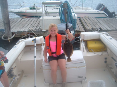 Made another move to an always productive spot and the fish again started coming over the rails, Emmi scored the biggest and second ighest tally for the day. It was again a ladies day as they put on a Fluke Clinic that would rival many hard core men. Was rewarded with a present from 9 year old Emii a had made Fish and Capt Bob sign, Thank you very much. They will be on the boat always.