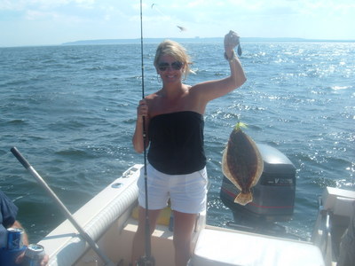 Had Bill Dixon and friends onboard for an afternoon of Fluking. Great weather and conditions were ok. Ran outside to where I wanted to be and lines in the water was not long before the poles began to bend. Faairly steady pick of Fluke with doubles coming over the rail. Again t was the lady outshining the gentleman taking the biggest fish.