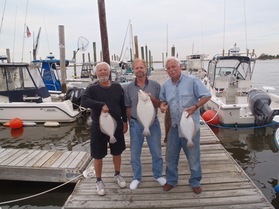 Today we had on board Jeff, Mike and Larry Heller for some Fluking. Started the haldf day trip at 1:00P and made our way to the grounds in good weather and seas.