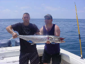 Out deep I have been bring in some big kingfish,limits of nice snapper up to 18lbs and some nice 6' blacktip shark. The water has started to heat up more than normal on the 50 mile trips all the mahi are at the tidal rips out about 62 miles and when have sure been bringing in nice limits of them last trip we boated about 80 chicken dolphin. Ling are out deep I am guessing the water temp has so much to do this and come sept this fishing should be better closer in at 50 miles. We have been hitting the shrimpers and banging the fish when we can get through the sharks. Blackfin are holding out about 80 miles so are the big wahoo up to 100 lbs.