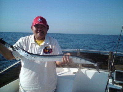 We then ran some trolling lures and we headed further South into deep waters and then we saw 2 of the rods banging around, 1st one, then the other and so it continued for quite some time before one of the reels eventually screamed and we landed the biggest Garfish I have ever seen off Durban (Mozambique size). He was released.