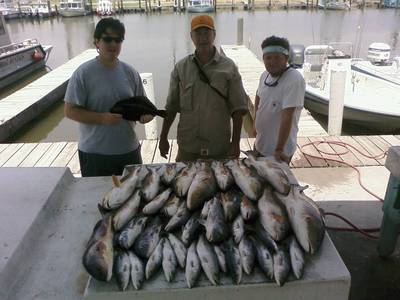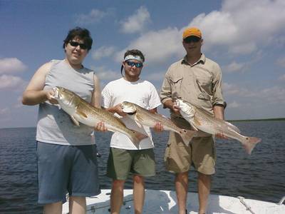 When I showed up to the dock Sunday morning, Billy and I both were happy to see that there was no rain and thunderstorms in the forcast. We left Lafitte Harbor Marina at 6:15am with the wind blowing northwest at about 15mph. Billy had asked me about catching Redfish and mabye some Speckled Trout after we had a limit of reds, if we had time. So we headed out for the Little Lake/ Turtle Bay area, in search of reds. Our first stop we caught a few nice reds, but did not do as good as the days before. So I decided to go try a few other areas. we picked up a few reds everytime we stopped the boat at a different spot. But we finally hit the honey hole, we boated our limit of 4 BIG Redfish over 27″ inches, and released a few more 27″ to 29″ inch reds that we could not keep, with Paul cathcing one red 30″ long we released to fight again. At one time we each had a redish on the line at the same time, only being able to keep one for the box. After we caught our daily limit of 20 Redfish, 3 Black Drum,and a Flounder that Ben caught on a gold spoon. we then headed out to Barataria Bay to look for a few Trout. When we arrived in the bay, we found many groups of bird working near Grand Terre Island, just east of Grand Isle. We caught 18 nice keeper trout and threw back 20 or so undersize trout in about an hour, before heading back to the dock in time for the guys to get cleaned up and checkout for the 2:00pm checkout at the Lafitte Harbor Cabins. I had a great day fishing with Billy and his sons Paul and Ben, and look forward to doing it again in the future. Thanks guys, and as always this was New Orleans Fishing At its Best!