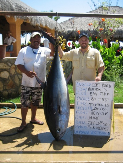 The combined panga fleets launching out of La Playita/Puerto Los Cabos Marina sent out approximately 43 charters for this shortened week, with anglers accounting for a fish count of: 2 striped marlin, 1 black marlin, 3 blue marlin, 1 sailfish, 16 wahoo, 18 dorado, 89 yellowfin tuna, 14 bonito, 6 cabrilla, 2 grouper, 7 huachinango, 6 dogtooth snapper and 12 amberjack..