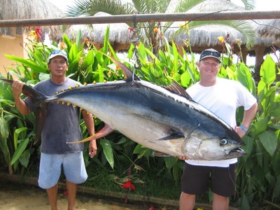 Thursday was a day off for local La Playita pangeros and many of them decided to try fishing off of their own docking area and they ended up getting into some epic action. The key was to first catch the Pacific moonfish for bait and then fly line them out into the channel, main catch was for roosterfish, ranging up to 45 pounds, also two tripletail were landed, a few nice snapper, barracuda, but the most incredible fish tale was of the possible new all tackle world record snook that spit the hook after being battled by a local angler who had managed to work the fish back out of the mooring structure into open water and had the fish inching up to gaff before it spit the hook. This fish was estimated to be as large as 80 pounds and everyone who saw it jumping said that it easily was over 60 pounds, the existing record is listed at 58 pounds, this means it well only grow larger now.
