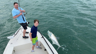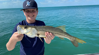 Whew, the bay was so empty today with just a few guides working, what a difference! Enjoying the calmer ambiance was repeat client Jon and Jack from S.C. With a stiff breeze coming in from the N.E. I took them to an area that has been holding tarpon and they were there with Jon quickly hooking up after just a few minutes wait. I was hoping we didn't lose this fish as we have the rest but everything worked out and we got the 120lb tarpon to the boat in a good 20 minutes. Nice work Jon! Next we worked an area to get Jack some fish and he did just that with snappers, snook, barracuda and a few more species before the trip was over and we headed back. While night time tarpon fishing has been good, the day time fishing remains slow with only a fraction of the fish we usually fish throughout the day.