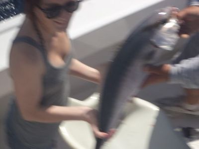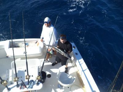 We started out trolling and catching some bonitos. Than we brought in the trolling gear and set out our kites with 4 live baits suspended from them and landed a couple of kingfish and one Mahia Mahia.