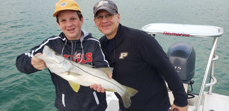 It's been non-stop charters as the season finally kicks into high gear. I had another double today starting with Kevin and his 10 year old son and they are both good fishermen. They broke the ice with each catching snook, jacks, mutton snapper, and a few more lost snook. That was the only spot we needed to fish as