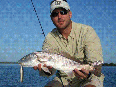Another fantastic morning! Redfish on topwater!! Here is a Photo of regular Monthly customer Mike Connor from Oasis Productions from Seattle Washington with a sweet 23 inch redfish on the "High-Roller" Also cursory picture of another nice red with yours truly..Its time to get out there....Book your trip today!!!
