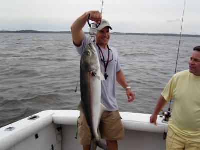 Today we had back regular costumer Jason Price and a few of his clients the goal was a little flukin and then blue and bass. Well we had a few fluke in the cooler right away then set the hook for bass. Hard to keep baits in the water today as blues were right on them within minutes. Spent a few hours playing catch and release with blues upto 14 pounds! Nice day on the water boat traffic wasn't as bad as yesterday and water is much cleaner then it has been.