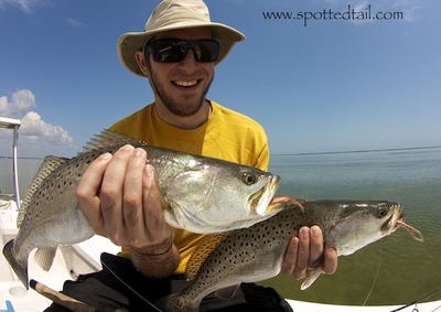 Thursday son Maxx joined me, again on Mosquito Lagoon. The weather was perfect and the trout were ON in a big way. We got at least 15 over 20 inches in length. Most were on DOA CAL jerkbaits, (yes new penny is still the hot color) but we got a couple nice fish on flies too. Maxx got a couple reds as well.