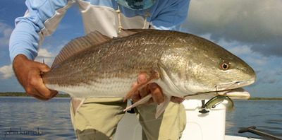 Friday Dr. George Yarko joined me for some R&R on the Indian River Lagoon. He hadn't been out for months! We found a school of redfish almost immediately, and got five on DOA CAL shad before they gave us the shake, nice fish, 24 inches or so. Then a few trout fell to the Deadly Combo. Then we went back to the place where the reds had been caught hoping to find them again. George got five blind casting the CAL Shad, unbelievable. As the east wind pushed us toward the edge of the manatee zone I tossed a Chug Bug, got a couple strikes, and got a nice trout of three pounds or so.