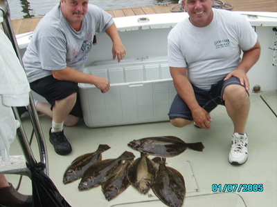 We had Dennis and Bill Appleby party for there 3rd trip this year.This time it was for Fluke.Thay had 6 nice keepers,and about 60 or so shorts.Bill was high hook with about 35 short and 4 keeper Dennis had the 25ins Fluke.