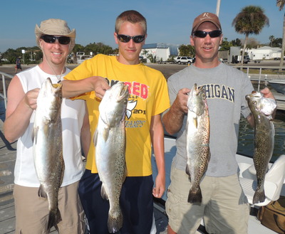 April 2013 Fishing Report: Large female Spotted Sea Trout were schooling up in the shallows a few weeks ago in March. We were using Scaled Sardines tossed into two feet of water with great results. I think the larger sea trout have learned to stay near the shallows and residential docks at night giving them a little protection from Flipper. We were actually looking for Redfish on a recent trip when we found a large school of female trout measuring up to 27 inches. I would like to see a maximum limit of 26 inches on trout as these fish are all fat with roe.