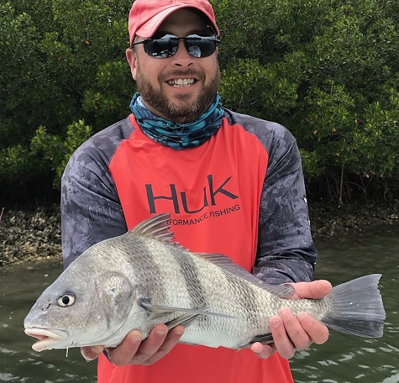 The spring 2020 charter season has come to a screeching slow down with the terrible Virus situation, we are still able to do take charters when requested, but visitors vacations are not happening now so myself and my wife are hunkering down to wait this out until clear sailing returns. Here is my spring fishing report from before the storm arrived: Spring 2020 has arrived to East Central Florida fishing waters, air temps in the 80’s, water temps up to the 70’s, more baitfish schools appearing on the waters surface with returning game fish like Jack Crevalle, Bluefish and Ladyfish striking the top water bait in early morning. Spring run shrimp are also coming through with the tide, down the intracoastal channel as well as the in the backcountry creeks and back channels. Seatrout, Redfish and Snook getting more active with warming water, ready to ambush bait fish, shrimp and artificial lures in the back waters. Black Drum are spreading through the back water holes and channels, small baby ones as well as fun catching sizes up to about 5 lbs like this one Jim from New Jersey caught with me recently ……………