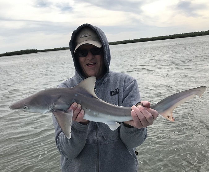 Al from The Villages, Florida was out with me recently along with a few friends visiting this winter from up north, this fun size Shark gave him a great light tackle battle ……………