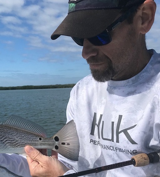 Normal Redfish have 1 spot on each side of the tail, but some individual Reds have extra spots like this small pretty one caught and released by my long time regular client Mike from Mt. Dora, FL…………