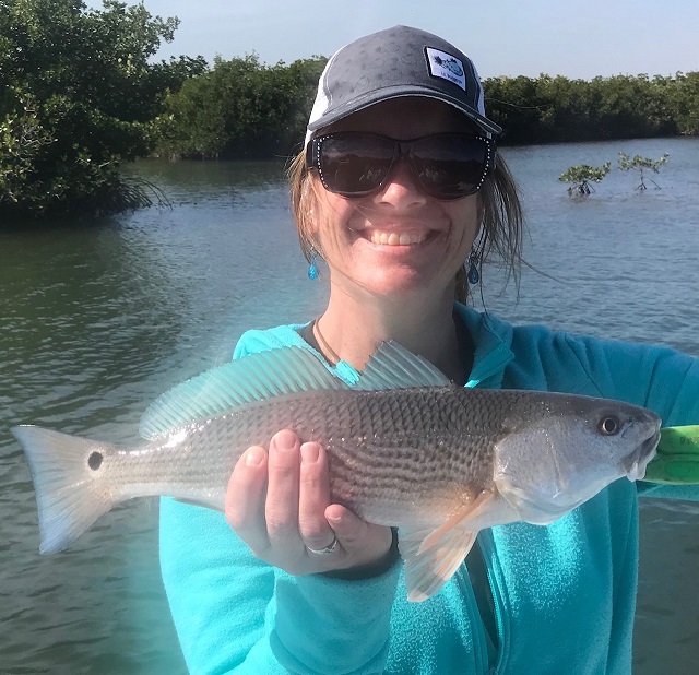 Another fun size little Redfish caught by Cassidy here from Denver Colorado out on a family charter…………….