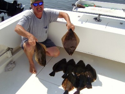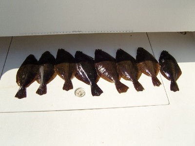 After the tide changed we headed back to my original spot and 4 oz jigs were now bouncing nicely the group boated 7 more keepers in a short time and we headed in with 8 fish just like last week. No monsters but it shouldn't be long before someone puts one in the boat