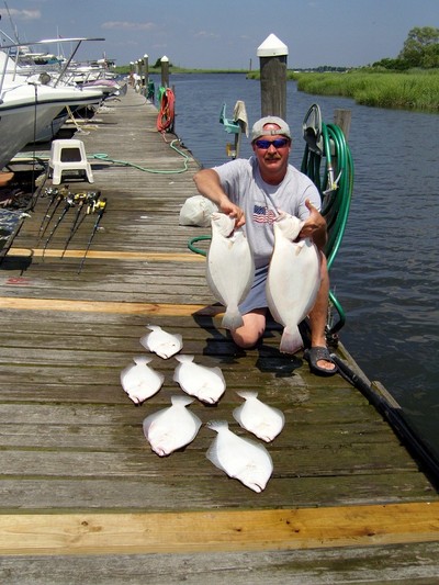 Sat- We had out Doug & Laura headed back to the same spot as Friday but with a much stiffer wind. Drift was FAST it took 12 oz and you were only bouncing it on the bottom. Had 3 fish there between 22-25 inches again Headed to the NJ side and added another 6 keepers to the days catch all fish kept were over 19"s. Needless to say they went home with a nice bag of fresh fish and enjoyed a great day on the water.