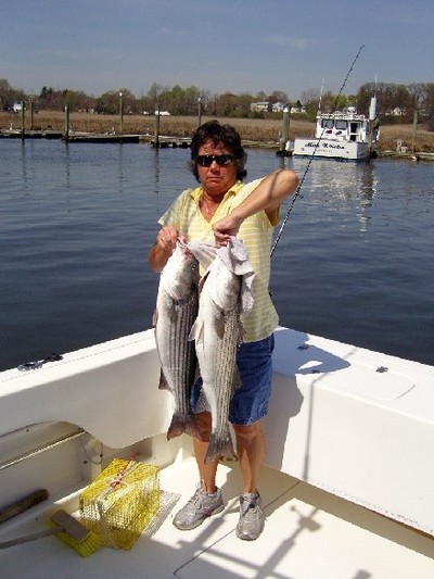 We stayed in the bay today and had a nice pull of bass. No giants yet but a few better size fish have made there way to the back bay. April had her limit in under 30 minutes to set the pace. Back at it in the morning all fish were taken on clams we did chum heavy!