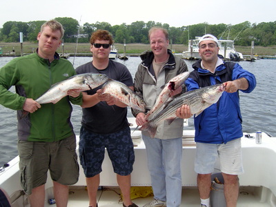 We hit the 1st spot and had 3 bass 1 keeper before the bluefish took over. Made a move and had much bigger blues chomping on the bait as soon as it hit the water. Few fish today Evan got his first ever keeper and Dougs brother caught his first ever fish!