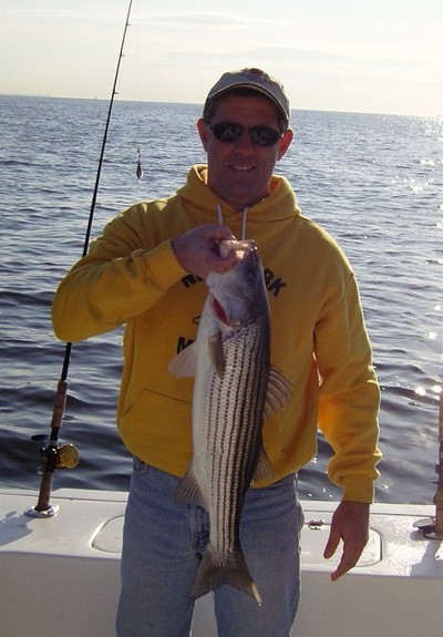 Well another day same results, Tried 3 different spots today and had nothing to show for it but short bass. Biggest was about 27"s had 1 as small as 14"s water still brown and no bunker to be found. Few guys trolling seemed to be doing better again today. Hopefully better on Sunday. Bigger bass should be moving in soon once the bunker reappear!