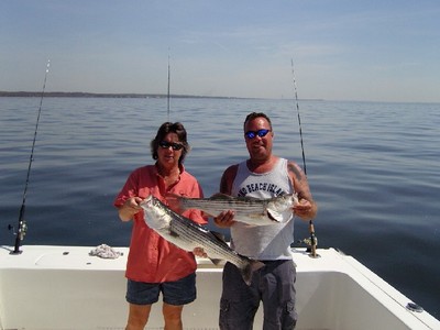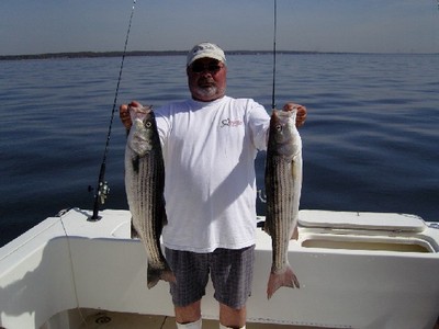Headed out a little earlier today and it paid off. Dropped the hook and had bass on right away this continued for well over an hour. Good day on the water with April and Dave didn't see nearly as many boats out there today in the back they all seemed to be stacked up at 19.