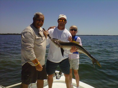 Pictured above is Lauren Lehizh with a 38 inch cobia she caught being held by her father Mitch. This fish was caught free-lining shinners in Pine Island Sound. Great Fish!