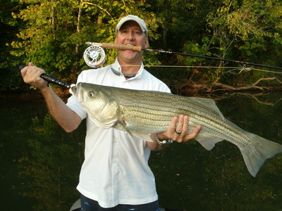 *Picture - Like the 25 pounder this lucky angler caught while on a recent guided fishing trip with Reed Montgomery of Reeds Guide Service while fishing on Alabama's Logan Martin Lake! (See picture). Caught with a white four inch long feather fly!