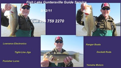The spawning time of year can be as easy as understanding one statement; "find the hard bottom surface areas of your lake." Most lakes have a variety of bottom surface from soft and muddy or vegetation areas to rock, shell bottom, wood and clay. Guntersville is blessed with most of these different types of bottom structure and in the spring it's easy to find. I like a combination of the hard bottom and wood like stumps or bank lay down rip rap off a red clay bank. You see on Guntersville the hard bottom clay areas are very easy to see, if you look up and see a cut out bank that looks red it generally red clay. If you start fishing through an area where you see a red clay bank and realize there is an abundance of stumps then you have more than likely found the ideal spawning grounds. The only other thing to remember is to get shallow enough for the bass to be actively spawning; sometimes that might be as shallow as inches of water. I personally believe the bigger fish spawn in the least amount of water and generally next to the bank edge.