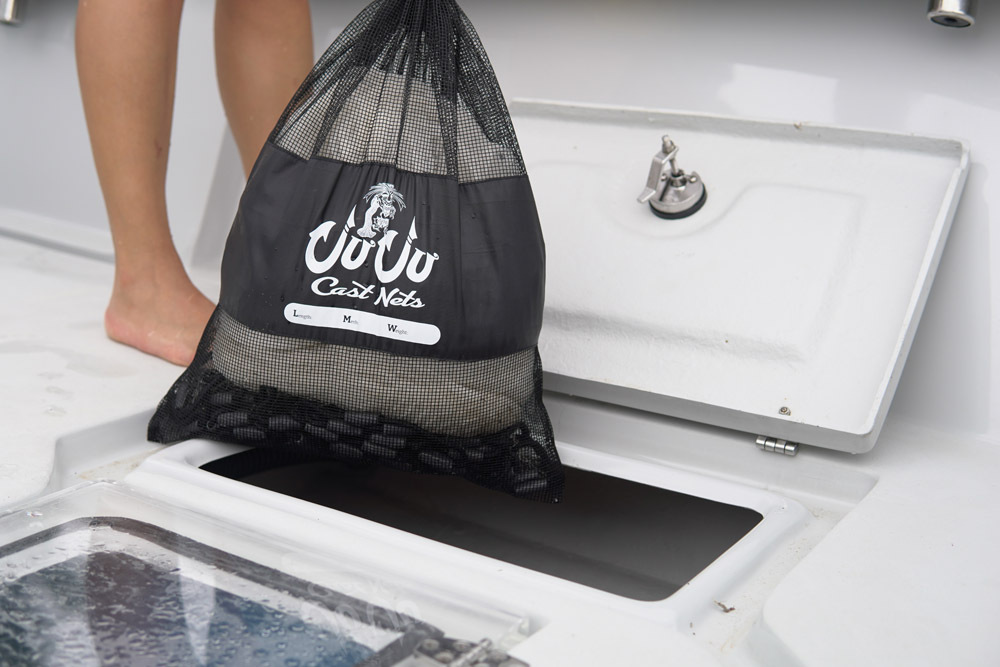 The most important thing to consider when storing a cast net is that it is clean and dry. Areas with a lot of moisture will reduce the life of your net. Starting your daily bait sessions with a dry and clean net makes every captain happy.