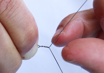 Note! A big mistake many make is that they wrap the one wire around the other, rather than both jointly around each other. If you don't form that jointed bond, the wire will slip and you will lose fish.