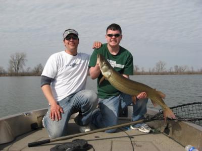 Shallow weed/sand flats that gradually drop off into deep water, weedy bays and even expansive areas of pencil reeds will hold a majority of the fish early on. Locating above average water temps, a dark or silt bottom, newly emerging weeds and concentrations of baitfish within these spots will usually mean the difference between success and failure. Early in the season I like to start fishing in 3-5 FOW (feet of water) and gradually move deeper as the shallower weeds develop and become unfishable. Moving your boat in wide "S" patterns with the trolling motor over the top of newly emerging weeds, rather than along the edge will greatly improve your odds of hooking up. If you're fishing bigger lakes in the spring and would like to narrow down your perimeter slightly, wind blown shorelines with newly emerging weeds are a great place to start and where you will often find the warmer temps in the lake, not to mention feeding muskies.