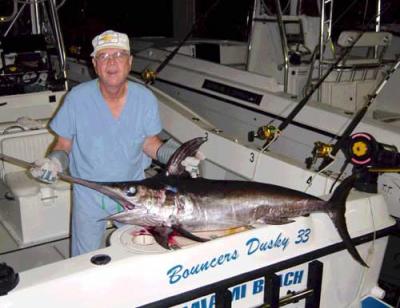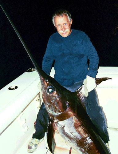 Joe had rode along with the captain on charters and had been the angler on research trips several times as he and the captain worked to perfect night swordfishing off south Florida. Joe was born with a very creative mind and his study of articles and comparison with other fishing methods brought him to believe that slow trolling with downriggers was the best way to catch these great gamefish. Now he was hooked up to the fruit of his labors.