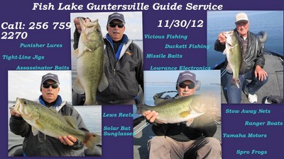 Although more prevalent in other lakes than Guntersville, water level also moves the fish sometimes several times a day. As so many lakes are backed up by dams and constant water level change to produce power is a normal part of most river systems, this also affects the depth of where the bass are staging. High water pushes them shallow, lower water pushes them deeper.