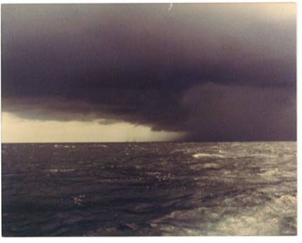 I remember the ocean conditions being without any sort of movement. The air was basically non-existence. It was hot, muggy, and I think you get the picture. This is what happens when a large strong weather change is approaching an area. It basically sucks the life of the current conditions. The wall of the storm, which couldn't be seen on my radar, due to the fact it wasn't lined with rain, was very definite. I entered it from complete calm sea conditions to a strong ripple. A storm ripple is which the winds were very strong, but the sea hasn't caught up with it. As I write this I can't help but remember the air pressure being so tight.