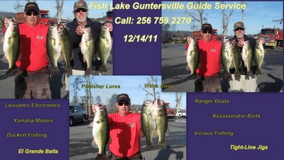 With the warmer water we are seeing schools of shad being followed and ambushed all day long during a time of year that chasing is always slow and the bass are generally suspending. The bass being active is just not the norm now so my choice of bait has been a big 1 oz. Punisher Spinner Bait. The bass are hanging under the massive schools of bait and feeding freely throughout the day. Big spinner baits to me have flash and movement and being pulled thru schools of bait is just the ticket to a big Guntersville strike.