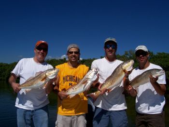 Baits are a very important part of catching redfish. I try to have a variety of baits during my Tampa Fishing Charters. Greenbacks, pinfish, and threadfins are my choice of baits. I will usually use live greenbacks, fishing them under a cork or free lining them. Small pinfish make a good live bait and for big pinfish cut the head and tail off and use the center section for cut bait. Threadfins are my favorite redfish bait, I use them as cut bait and redfish love it.