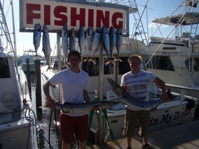 We set out 2 planner boards about 45 to 50 feet deep and 3 bonito's strips skipping across the surface. And once again the kings and bonitos did not let us down. They were biting like mad dogs and everyone one caught a lot of fish. We ended up with our limit of king fish and a box full of bonitos.