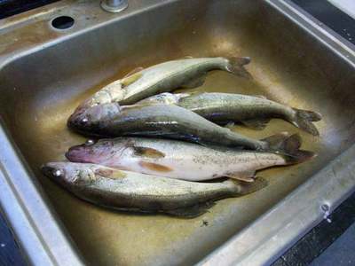 Today I had Larry and his 8 yr. old grandson Grant on board for a 5 hr. excursion. We started out casting jigs/crawlers in the weeds, and on Larry's second cast he caught a fish, so it didn't take us long to find them. Let me tell you, Grant is going to be one good fisherman, this kid started pulling in walleyes left and right, and even caught one before the Captain. I had more fun watchng Grant catch fish than I had catching them myself. I pictured my own son Cameron out there in a few years reeling them in. The only bad thing was that out of about 30 walleyes landed while pitching jigs none of them were keepers. We were greeted this morning with the worst wind possible, a west wind, making it difficult to stay on our spot. We made two drifts along the weeds before I made the decision to change tactics and locations to look for some bigger fish. We headed north and started trolling Walleyes Choice (http://www.walleyeschoice.com) harnesses along another weedline and pretty soon they started biting. We finished our morning doing this and ended up with 5 keepers and several more throwbacks. Noticed more spent mayfly carcasses on the surface and even saw some alewives jumping out of the water. This is typically the best time of year for numbers of fish, but it seems like everything is about a month behind this summer. Here's a few pictures from today, good luck from all of us in the Bay de Noc area.