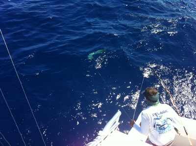 Saw one nice size blue that pulled the hook after a 20 minute fight. Bill Wraps as well as the other Hatteras in the charter fleet, Irene and WiWi had also awesome days in the water landing nice mahis.