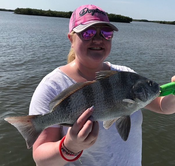 One of my trips was part of the Florida honeymoon plans for a couple of newlyweds from North Dakota, Alicia with a nice Black Drum …………….