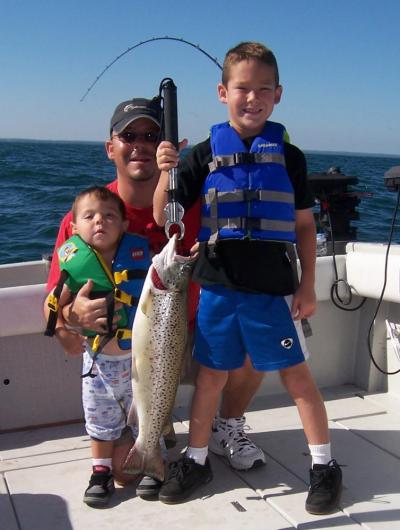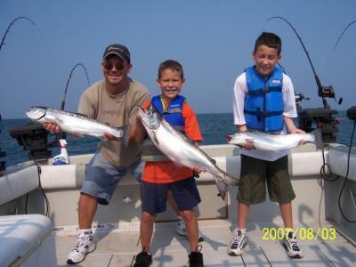 Trolling for king salmon on Lake Ontario has been alot tougher the last few days. We're working hard for a few fish. The kings have been around but they've been tough to catch. Brown trout and steelheads have been much more cooperative. Spoons run 50-60' down off the riggers in 70-80' of water seems to do the trick. Salmon have been scattered from 100' out to 500' w/ the deeper water being slightly more productive then in close. Spoons and dodger/fly combos have been working off the riggers 70-90' down. August is far and away the best month for kings so certainly expect things to turn back around soon enough.