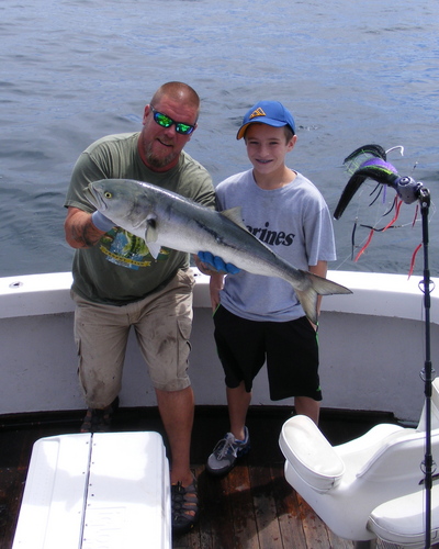 This last week I had a booth trip, a trip I got from our Rock Harbor booking agent, for a half day of fishing. We landed a number of bass and bluefish but what was unusual was one of the bluefish was unusually large. In excess of 15 pounds. It was landed by a young angler named Matt Doran from Hopewell Junction, N.J. His father, Bob, helped him a bit but this 11 year old angler did most of it himself. Anyone who has tangled with a big bluefish knows it's not a walk in the park. Kudos to young Matt.