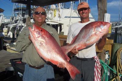 Capt. Mike Thierry and Mark Clark with sow snappers
