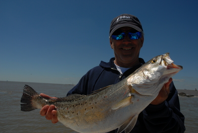 As far as the Trout, kind of crazy, as one day you can't keep them off the hooks and the next day you have to hunt them down. This is the time of the year when anglers have a pretty good opportunity to catch a large trout but that is predicated on conditions. Windy days = tough conditions for large trout, but when the winds are calm we are seeing some awesome Trout. These weeks large Trout pressed a little over 7 pounds, weighing in at 7.4 pounds. Average Trout this week was between 1 ½ and 3 pounds.
